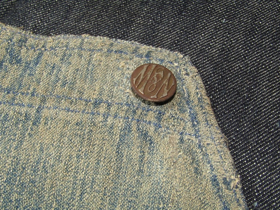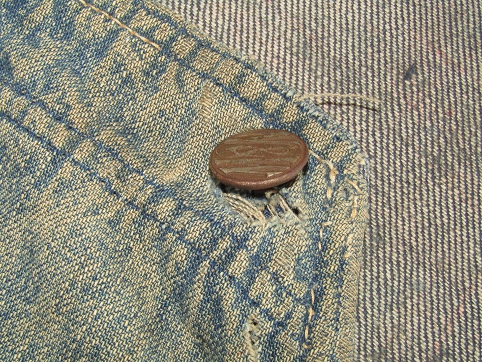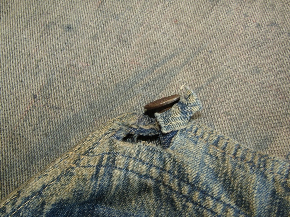 リペア作業として、ヴィンテージのリベットの再利用のご依頼をとて多く頂いています。ヴィンテージのジーンズでは裏金具が金属の劣化で外れてしまい、表側のリベットだけが、デニムに付いている場合が多くあり、成功率もほぼ100%なので、とても好評をいただいています。ネオバーボタンに関しても、リベットほどの成功率はありませんが、再利用は十分に可能です。是非、お気軽にご相談いただければと思います。また、海外の有名ブランドのデニムでも、製造工程の不具合で、トップボタンが外れてしまう場合があります。そういった場合でも、トップボタンの再利用も可能です。ブランドのネームが刻印されている場合もまった場合は、諦めずに是非、再利用を!
